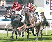 「哥倫布」(左)上仗田草1400米得第6名。