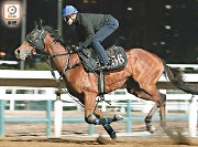 昨朝有好多馬出試。「祝願」霍宏聲拍退役馬跳3段,戴眼罩及頭罩,退役馬直路推騎,「祝願」按韁後來居上,充滿氣勢弗到震。