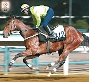 「銳目」艾道拿跳一段,跑姿順暢毫無稚嫩感,身壯毛色靚,早熟上力,初出已需留意。