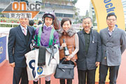黃佩茵(中)力撐何敬森(左一),將大衛金剛留在華廐,昨日終取得成果。