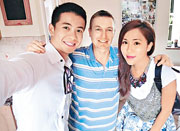 梁家俊與女友阿Kit在英國獲魯賓(中)遜招待。