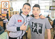 梁家俊(左)與孖生細佬梁家偉昨朝齊齊出席港澳盃排位抽籤。
