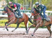 練馬師巫偉傑(Cody)好耐未試過戎裝上陣課馬,昨晨突然技癢親自操刀,替新轉倉馬「翠兒威威」考驗,拍廐侶「納百川」周俊樂快試砥礪,兩駒不分先後拍住衝過終點,鏡頭矚目。