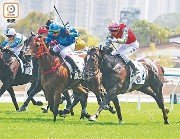 黃金騎士(右)受阻再衝愈追愈近。