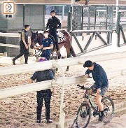 經過近5個月養傷及復操,「燈胆將軍」試閘已有好走勢,今戰終可復出,昨早最後試跑課期,潘頓不肯假手於人,堅持5時半捱眼瞓到場,替馬匹在大圈快跳考驗,重視程度可見一斑。課後,黎昭昇隨即踩單車前往機坪恭候,並從兩條防撞欄之間的空隙,窺探馬匹操後神態,鏡頭倍添神秘!