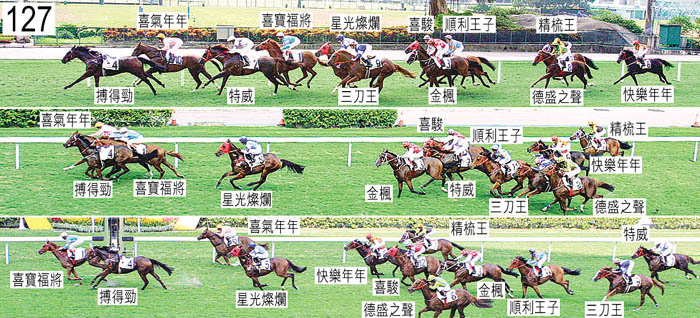 「喜寶福將」身靚神生。「特威」汗濕已減少。「金楓」有汗,神色一般。「星光燦爛」身壯好火。「喜駿」有汗濕,閘前打圈。「喜氣年年」收身勝前。