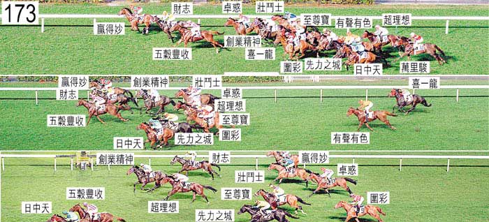 賽事日期 : 2003/11/08 第十場 第三班 70-50分 1600米 總場次:173 開跑時間:5:40