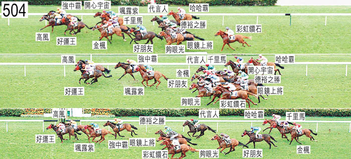 「強中霸」出閘笨拙。躍出時,「金楓」與「高風」互相碰撞,「高風」因而隨即向外斜跑,導致其外側的「千里馬」略受擠迫。「代言人」出閘稍慢,繼而被「哈哈霸」碰撞,當時「哈哈霸」出閘笨拙並且向內斜跑。千二米處,「眼鏡上將」與「金楓」在「千里馬」內側均一度受擠迫。接近一千米處,「哈哈霸」低俯。在直路早段,「眼鏡上將」靠近「好朋友」後蹄處於窘境,並且在「夠眼光」內側緊迫。高雅志(「德裕之勝」)說,原先打算將該駒置於大約中間位置競跑。他說,該駒笨拙地躍出,於著地時發出異常呼吸聲。他說,起步後不久,「好運王」與「夠眼光」均在他前面斜跑,令他無法上前,因此他選擇讓「德裕之勝」順其自然地取位,這意味著居於較預期稍後的位置。他說,「德裕之勝」走勢暢順,於接近三百米處推進時,他在「金楓」與「好朋友」之間難以取位,因此在一段途程上須停止催策。他說,於接近二百米處望空後,「德裕之勝」以勁勢衝刺。小組接納高雅志的解釋。「金楓」須接受獸醫檢驗及抽樣檢驗,賽後該駒由獸醫檢驗,並無發現任何明顯異常之處。「好運王」與「高風」均須接受抽樣檢驗。
