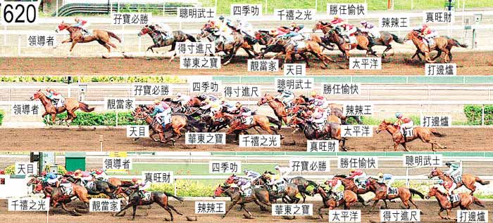 「千禧之光」身不瘦,仍好火。「真旺財」神生但有汗。「靚當家」依然見靚。「勝任愉快」紮四隻腳,神色一般。