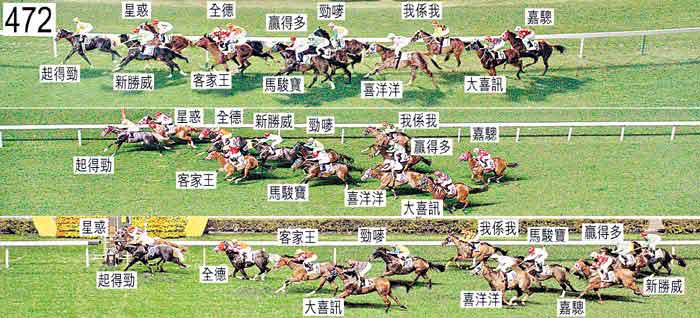 「起得勁」及「星惑」均出閘笨拙。六百米處轉彎時,走勢欠順的「全德」,靠近「星惑」後蹄處於窘境。入直路時,「喜洋洋」收慢並且向外移出避開「贏得多」的後蹄。同樣在入直路時,「勁嘜」在「贏得多」內側處於窘境,當時「贏得多」在「馬駿寶」內側緊迫。接近二百米處,「勁嘜」移至「新勝威」外側,當時「新勝威」正在墮退。奔向終點時,「大喜訊」內閃。「馬駿寶」大部份途程上在外疊競跑,沒有遮擋。白布朗(「嘉驄」)說,他獲指示盡可能將該駒置於中間位置競跑。他說,「嘉驄」出閘迅速,在早段他沒有一路催策坐騎,讓其他馬匹上前。他說,接近八百米處當「全德」扒頭後,他稍為催策「嘉驄」以圖跟隨該駒上前,但「嘉驄」的動作,尤其是一對前腳立即顯得笨拙。他說,「嘉驄」持續走勢笨拙,轉直路彎時甚至失去平衡。他說,鑑於「嘉驄」的走勢,坐騎居於較原本打算更後的位置。高雅志(「贏得多」)說,他獲指示盡可能領放。他說,通常出閘迅速的「贏得多」,是晚在閘內站姿欠佳,因此出閘僅屬普通。他說,他一路催策坐騎以圖上前,但「起得勁」於出閘後不久能夠在他內側輕易推進。他說,其後被「新勝威」過頭後,「贏得多」走勢欠順。他說,他沿途一路催策「贏得多」,然而自六百米處起他大力催策坐騎,但坐騎於入直路前已開始墮退。除了表示「贏得多」在未能領放的情況下可能不適應之外,他未能就該駒的表現作出任何解釋。「贏得多」須接受獸醫檢查及抽樣檢驗,賽後獸醫檢查該駒,並無發現任何明顯異常之處。巫斯義(「新勝威」)解釋,他依照指示自外檔出閘後催策坐騎上前。他說,他不須猛烈催策,坐騎已能進佔領放馬「起得勁」外側的位置,然而「新勝威」本身已消耗太多氣力上前,因而在直路上墮退。「新勝威」須接受獸醫檢查,賽後獸醫檢查該駒,內窺鏡檢查顯示該駒的氣管內有很多膿痰。「新勝威」必須通過獸醫檢驗後,才可再次出賽。「星惑」及「起得勁」均須接受抽樣檢驗。賽後,「起得勁」被發現左後蹄的蹄鐵移位。