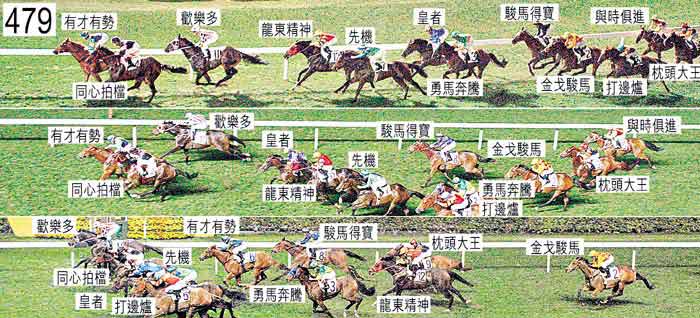 「駿馬得寶」出閘緩慢。出閘後不久,「勇馬奔騰」及「先機」在雙雙斜跑的「同心拍檔」與「歡樂多」之間均受擠迫。接近千六米處,「同心拍檔」收慢避開「有才有勢」(柏寶)的後蹄,當時「有才有勢」在尚未充分帶離時向內移入。小組告誡柏寶必須加倍小心。首次趨近終點時,「皇者」在「龍東精神」後蹄內側處於窘境時收慢。與此同時,「駿馬得寶」在「金戈駿馬」內側處於窘境時收慢,當時「金戈駿馬」被收慢讓「勇馬奔騰」切入。其後,由於「勇馬奔騰」在沒有足夠空位時改善位置,「皇者」及「勇馬奔騰」(杜利萊)因而均在「先機」後蹄內側緊迫競跑。小組告誡杜利萊須加倍小心。首次跑過終點柱後,「打邊爐」在「與時俱進」與「枕頭大王」之間處於窘境時收慢。九百米處,「駿馬得寶」靠近「皇者」後蹄時失去平衡。入直路後不久,「勇馬奔騰」勒避並且向外移出避開「先機」。趨近二百米處,韋達(「同心拍檔」)的馬鞭被柏寶的馬鞭擊中脫手。一百五十米處,「勇馬奔騰」在「先機」與「打邊爐」之間處於窘境。「歡樂多」及「同心拍檔」均須接受抽樣檢驗。
