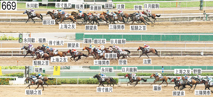 「駔驍之首」勤跑不瘦,火旺神生。「福勇」延遲亮相,收身上力。「得寸進尺」肚底有汗,頻起雙飛。「永同歡」愈行愈濕,稍嫌急躁。「日月龍駒」馬身乾爽,火氣不俗。「躍勝」身形渾圓,稍有躁火。「願望泉」身形保持,火氣平淡。「上海之友」神態暢旺,有火有力。「野蠻」毛色深潤,情緒集中。「三陽開泰」馬身稍圓,神態不俗。「幸運勝」色漸轉深,火氣麻麻。「靚花紋」身壯毛靚,暗勁內藏。「法寶」肌肉收實,火氣普通。