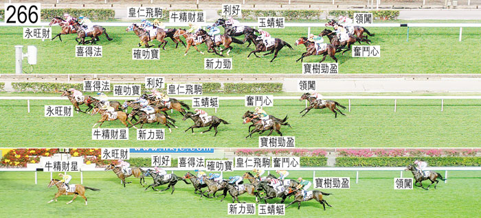 「時分秒」於十二月二十二日被小組按照獸醫意見(右前腳不良於行)著令退出。該駒必須通過獸醫檢驗後,才可再次出賽。「領闖」出閘笨拙,向上跳躍。「利好」及「奮鬥心」均出閘緩慢。過了二百米處,難以望空的「皇仁飛駒」,收慢並且移至「喜得法」外側,其後過了一百米處在「確叻寶」與「喜得法」之間無路可上時勒避,當時「喜得法」被「利好」帶出更外疊。其後「皇仁飛駒」持續受困,因而沒有被力策至終點。戴勝(「喜得法」)解釋,由於該駒近期表現欠佳,而是日的場地似乎對前領馬匹有利,因此他獲指示自大外檔出閘後將該駒置於較慣常前的位置。他說,進入閘廂前他讓「喜得法」充分熱身,坐騎出閘迅速,他不須一路催策就能逐漸上前居於領放馬外側。被查詢有關「新力勁」的表現時,白德民說,坐騎來港後是日首次角逐千八米途程,由於步速的關係早段未能放鬆來跑,因此在催策下加速未及以往。他認為「新力勁」在此階段較適合角逐步速偏快的千八米以下途程賽事。韋達未能就「寶樹勁盈」的差劣表現提供解釋。他說,坐騎大部份途程走第三疊,沒有遮擋,但即使如此,坐騎亦不應在六百米處已開始須受催策。他說,「寶樹勁盈」衝刺的表現令人失望。「寶樹勁盈」須接受獸醫檢查,賽後獸醫檢查該駒,並無發現任何明顯異常之處。「新力勁」、「牛精財星」以及「永旺財」均須接受抽樣檢驗。