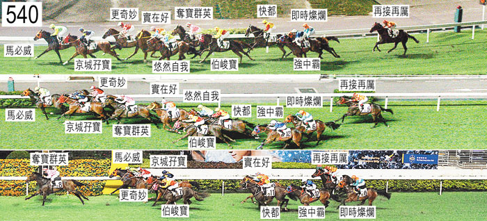 「奪寶群英」神態勝前,觀感不弱,出跑道時落樓。「馬必威」有點火氣,過步有力。「更奇妙」神態生猛,行圈醒神。「伯峻寶」身尚不瘦,加罩唔急。「京城孖寶」毛水立令,今季長勇。「快都」神態活躍,有火有力。「實在好」毛水轉深,初起階段。「強中霸」前腳紮高,不過不失。「再接再厲」過步一般,色頗均勻。「即時燦爛」身材均勻,作戰水準。「悠然自我」行圈頗急,兩個人拖,但無汗濕。「我獨醒」行圈頗急,兩個人拖。
