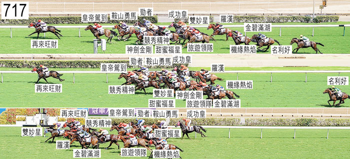 「名利好」出閘時向上跳躍,因而失地。「羅漢」儘管在早段被一路催策,但仍未能加速。千六米處,「旅遊領隊」在「神劍金剛」後蹄內側處於窘境時昂首。過了千六米處,「甜蜜福星」被「鞍山勇馬」碰撞。入直路前,「機緣熱焰」收慢避開「旅遊領隊」後蹄。自四百米處及至三百米處,「雙妙星」受困,未能望空。直路上,「機緣熱焰」外閃,三百米處與「金碧滿湖」互相碰撞。二百米處,「機緣熱焰」在「金碧滿湖」與「旅遊領隊」之間無路可上時勒避,當時「金碧滿湖」向內斜跑,而「旅遊領隊」則向外斜跑。小組不採取行動。在最後五十米內,韋達(「雙妙星」)右邊韁繩脫手。過了五十米處,「旅遊領隊」一度收慢避開「金碧滿湖」後蹄。柏寶(「神劍金剛」)報告,在賽事早段坐騎未能展步,動作感覺不平衡。他說,因此接近千六米處,他向下望坐騎的前腳。他說,其後在外疊沒有遮擋下競跑時,他讓「神劍金剛」展步上前,但未能帶離內側的馬匹,居於領放馬外側。他說,入直路後,他催策「神劍金剛」,但坐騎毫無反應,其後過了三百米處在墮退之際動作大幅縮短,他因而沒有力策坐騎至終點。「神劍金剛」須接受獸醫檢查,賽後獸醫檢查該駒,並無發現任何明顯異常之處。小組認為「神劍金剛」的表現難以接受。該駒必須試閘及格,並且通過獸醫檢驗後,才可再次出賽。「勁者」須接受獸醫檢查,賽後獸醫檢查該駒,並無發現任何明顯異常之處。「再來旺財」、「雙妙星」以及「羅漢」均須接受抽樣檢驗。賽後獸醫報告,「皇帝駕到」右前腳不良於行,而「機緣熱焰」則失去右後蹄的蹄鐵。「皇帝駕到」必須通過獸醫檢驗後,才可再次出賽。