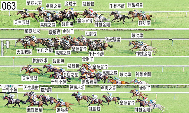 「皇帝旨令」出閘緩慢,其後不久被「夢寐以求」阻礙,當時「夢寐以求」向外斜跑。「無敵福星」在直路上未能望空,直至接近二百五十米移至「千杯不醉」外側望空。「高耀之威」沿途在外疊競跑,沒有遮擋,直路上墮退。被查詢時,鄭雨滇(「神雄金剛」)說,坐騎首次轉彎時開始外閃,持續外閃至入直路後。他說,鑑於「神雄金剛」在中段的走勢,坐騎其後未能以勁勢衝刺。賽後獸醫檢查「神雄金剛」及「高耀之威」,並無發現任何明顯異常之處。「千杯不醉」及「無敵福星」均須接受抽樣檢驗。