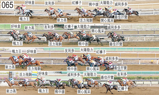 「驚喜」在亮相圈時後仰翻轉,獸醫檢查後認為該駒不適宜出賽。小組按照獸醫意見,著令「驚喜」退出。「驚喜」必須通過獸醫檢驗後,才可再次出賽。「驚喜」的練馬師何良承諾在該駒下次出賽前,會安排牠在亮相圈熟習環境。閘門開啟時,「太陽勁力」一對前腳並舉,因而出閘笨拙並且失地。同樣在開閘時,「威利多多」一對前腳並舉,因而失地。「開心風采」出閘笨拙。一千米處,「熊中雄」被迫收慢避開「新力高」後蹄,當時「新力高」被「魄力王」(賴維銘)帶向內跑。小組嚴厲譴責賴維銘,並告誡他在轉移跑線時必須確保已充分帶離。趨近及至跑過九百米處在一段途程上,跑來搶口的「友利多」,在「好味皇」與「魄力王」之間受擠迫,當時「魄力王」向內斜跑。賴維銘因在賽事此階段對其內側的馬匹造成不必要的擠迫,被小組嚴厲譴責。在此宗事件中,「友利多」碰撞「好味皇」,「好味皇」因而失去平衡。「友利多」於首次轉彎時被「魄力王」過頭切入後,靠近「魄力王」後蹄處於窘境時將頭轉側並且外閃。「好味皇」、「新力高」以及「活力飛駒」均須接受抽樣檢驗。