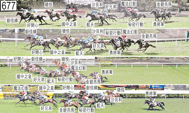 起步後不久,「魔法幻影」及「金碧亮馬」均受到「創佳績」擠迫,當時「創佳績」將頭轉側,並向外斜跑。接近千三米處,「特寶樂」失蹄,其後未有參與角逐。賽後,獸醫報告「特寶樂」右前腳球節不良於行。「特寶樂」必須通過獸醫檢驗後,才可再次出賽。跑過千三米處在一段短途程上,「沙貝利」在「好兄弟」內側的窄位競跑。接近九百米處,「藍天」在外側競跑,沒有遮擋。賽後獸醫檢查「藍天」、「勇將軍」以及「好開心」,並無發現任何明顯異常之處。「魔法幻影」及「國中之星」均須接受抽樣檢驗。