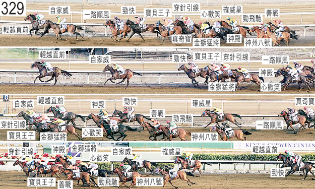 「善戰」出閘緩慢,起步後不久在雙雙斜跑的「勁快」與「勁飛馳」之間受擠迫時收慢。「神州八號」自外檔起步後不久在馬群後面切入。趨近一千米處時獲取遮擋後,「一路順風」在被「勁快」帶向外跑時再次於沒有遮擋下競跑,當時「勁快」於接近八百米處向外斜跑。「金獅猛將」在外疊競跑,沒有遮擋直至跑過一千米處。進入對面直路後,「自家威」與「輕越直前」均難以穩定走勢。接近八百米處時,「真奇寶」被「寶貝王子」碰撞時失去平衡,當時「寶貝王子」一度向內斜跑。跟隨「寶貝王子」的「心歡笑」靠近該駒後蹄處於窘境時向外移出,因而兩度碰撞「金獅猛將」。其後「金獅猛將」再次在沒有遮擋下競跑。趨近六百米處時,「心歡笑」靠近「寶貝王子」後蹄處於窘境。轉直路彎時,「確威星」與「真奇寶」均在「一路順風」內側大力勒避,當時儘管騎師韋達已努力阻止,但「一路順風」仍將頭轉側,並且嚴重內閃。韋達說,於六百米處前「一路順風」已脫口,轉直路彎頗為嚴重內閃後在直路上急促墮退時持續內閃。由於這是「一路順風」第二次在賽事途中嚴重內閃,小組決定該駒必須連續多次在轉彎途程上試閘及格後,才可再次出賽。被查詢有關「勁快」令人失望的表現時,潘頓說,過了千二米處轉彎時他作出移離內欄競跑的決定,因為他覺得「輕越直前」正收慢讓「自家威」推進。他說,當「自家威」繼續在「輕越直前」的外側競跑時,他讓「勁快」維持在「自家威」後面的位置。他說,「勁快」走勢暢順直至接近七百米處,此時坐騎受大力催策。他說,自此時起他強烈催策「勁快」,務求坐騎能對其催策交出反應,但「勁快」持續墮退。他說,儘管「勁快」在直路上傾向內閃,但此時坐騎已洩氣。他又說,他認為該駒在較高班次的賽事中顯得力有不逮。被查詢有關「穿針引線」的進步表現時,練馬師梁定華說,他認為該駒受惠於是賽與上賽相距已有一段時間。他說,之前他安排「穿針引線」較頻密出賽,他覺得在賽事之間有較長的時間休賽,令該駒能交出進步的表現。他又說,儘管他對上仗策騎「穿針引線」的騎師的處理方法感到滿意,但他相信是賽受惠於由都爾策騎,因為都爾曾夥拍該駒勝出。賽後獸醫檢查「一路順風」與「勁快」,並無發現任何明顯異常之處。「金獅猛將」、「穿針引線」以及「寶貝王子」均須接受抽樣檢驗。