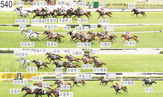 「財源來」出閘緩慢。首次跑過終點時,「明旺」在「飛帆」內側競跑時失去平衡,當時「飛帆」在「叫關快」後蹄內側處於窘境。在直路上,「傲闖」將頭轉側並內閃。「飛帆」包尾大敗而回,小組認為該駒的表現難以接受。「飛帆」必須試閘及格,以及通過獸醫檢驗後,才可再次出賽。「好好機會」沿途在外疊競跑,沒有遮擋,直路彎前開始墮退。賽後獸醫應練馬師沈集成的要求,替「拼勁」進行內窺鏡檢查,檢查顯示該駒的氣管內有很多血。「拼勁」必須通過獸醫檢驗後,才可再次出賽。賽後獸醫檢查「好好機會」及「飛帆」,並無發現任何明顯異常之處。「傲闖」、「重量級」以及「錢程萬里」均須接受抽樣檢驗。