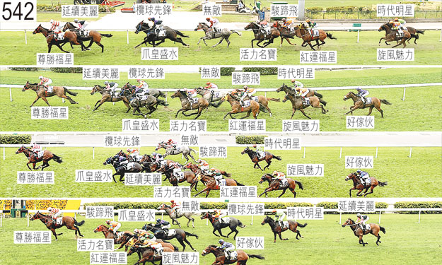 「精靈勇駿」於賽日早上被小組按照獸醫意見(右前足腫脹)著令退出。「精靈勇駿」必須通過獸醫檢驗後,才可再次出賽。「旋風魅力」及「好傢伙」自外檔出閘後不久均在馬群後面切入。起步後不久,「活力名寶」在「紅運福星」與「駿蹄飛」之間受擠迫,當時「駿蹄飛」在出閘笨拙後被「尊勝福星」帶向外跑。趨近一千米處時,「尊勝福星」將頭轉側,向內斜跑並與「延續美麗」互相觸碰,因而失去平衡。趨近五百米處時,「旋風魅力」靠近「紅運福星」後蹄處於窘境。入直路後不久,「延續美麗」在「爪皇盛水」與「欖球先鋒」之間緊迫競跑,當時「欖球先鋒」向外斜跑。被查詢有關「欖球先鋒」令人失望的表現時,安國倫說,坐騎在領放馬之後走勢暢順。他說,過了七百米處後,他希望能夠居於更為接近領放馬「尊勝福星」的位置,然而,由於他居於「延續美麗」後面、「爪皇盛水」內側,他因而未能在此時推進。他說,雖然他在直路早段將「欖球先鋒」向外移出以展開衝刺,然而,坐騎瞬即須受催策,在直路上對其催策沒有反應,走勢令人失望。他又說,他曾策騎該駒進行是賽前最後一課快操,他認為坐騎在該課操練表現良好。賽後獸醫檢查「欖球先鋒」,內窺鏡檢查顯示該駒的氣管內有很多血。「欖球先鋒」必須通過獸醫檢驗後,才可再次出賽。賽後獸醫報告,「爪皇盛水」失去左後蹄的蹄鐵。「尊勝福星」及「駿蹄飛」均須接受抽樣檢驗。