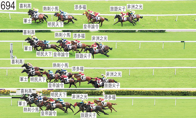 「添多福」與「皇帝諭令」起步時互相碰撞。 自千一米處至七百米處的一段途程上,「添多福」十分難以穩定走勢,並且數度昂首。 在直路早段,「熱刺小馬」在「軍士」後面受困而未能望空。 被查詢有關「旅遊尖子」令人失望的表現時,杜利萊說,出閘僅屬普通後,他在起步後的一段短途程上須一路催策坐騎,讓坐騎盡可能靠近主馬群競跑。他說,當賽事的步速在中段減慢時,「旅遊尖子」走勢暢順,沿途跟隨「皇帝諭令」後,轉直路彎時他將「旅遊尖子」移至該駒外側。他又說,鑒於「旅遊尖子」陣上的走勢,他預期坐騎加速強勁,但儘管坐騎被一路催策,對催策卻毫無反應,表現令人失望。今季是「旅遊尖子」首季出賽,他認為,隨著出賽經驗增多,該駒將逐漸成熟。賽後獸醫立即檢查「旅遊尖子」,並無發現任何明顯異常之處。 賽後獸醫報告,「皇帝諭令」左前蹄的蹄鐵移位。 「旅遊尖子」、「軍士」以及「喜利高」均須接受抽樣檢驗。