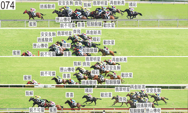 於宣佈出賽時,「齊飛」與「好笑容」均申報由見習騎師吳嘉晉策騎。小組確定見習騎師吳嘉晉已落實策騎「齊飛」。因此,小組批准「好笑容」改由楊明綸策騎。見習騎師吳嘉晉因此項宣佈出賽錯誤,被罰款二千元。 由於楊明綸身體不適,而又未能覓得能造到「好笑容」負磅或接近該駒負磅的替補騎師,所以小組於十月十一日著令「好笑容」退出,並由後備馬匹「再創新高」(彭利力)補上。 在前往跑道途中,「喜盈門」十分煩躁不安及以後足豎立,導致騎師韋達被拋下。獸醫表示,「喜盈門」右前腿脛部及球節部位內側有多處割傷。小組按照獸醫意見,著令該駒退出。「喜盈門」必須通過獸醫檢驗後,才可再次出賽。韋達接受馬會醫生檢查,醫生認為他適宜履行餘下的策騎聘約。 入閘後,「駔驍駿驥」煩躁不安及以後足豎立。「駔驍駿驥」必須經閘廂測試及格後,才可再次出賽。 「精彩」出閘緩慢。 開閘時,「翡翠明星」舉起一對前蹄,隨即在「銳不可擋」與「善喜」之間受擠迫,當時「善喜」碰撞「歡欣星」後向內斜跑。 「再創新高」出閘笨拙,起步後不久收慢避開「蜜圈」後蹄,當時「蜜圈」向外斜跑。 儘管在早段被一路催策,「齊飛」仍增速緩慢。 跑過九百米處時,「點解」收慢避開「歷山傳奇」後蹄,當時「歷山傳奇」向外斜跑。 跑過四百米處時,「點解」靠近「逍遙駿將」後蹄處於窘境。 同樣於跑過四百米處時,「歡欣星」向內斜跑避開「駔驍駿驥」後蹄,繼而在跑過二百米處時再次向內斜跑避開「逍遙駿將」後蹄。 趨近五十米處時,「善喜」在「蜜圈」與「銳不可擋」之間無路可上時受妨礙。 賽後獸醫立即檢查「翡翠明星」,並無發現任何明顯異常之處。 「點解」與「銳不可擋」均須抽取樣本檢驗。