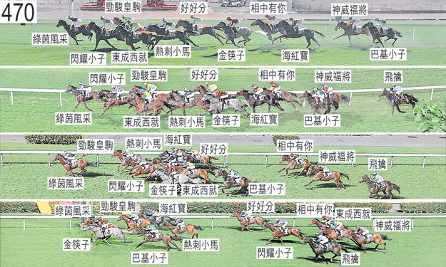 「熱刺小馬」出閘笨拙,向外斜跑,碰撞「東成西就」。 「飛擒」及「巴基小子」自外檔出閘後於早段均在馬群之後切入。 同樣自外檔出閘的「海紅寶」於早段收慢,起步後不久被正在向外斜跑的「東成西就」碰撞。 跑過二百米處時,「好好分」一度在「海紅寶」內側的窄位競跑,當時「海紅寶」移至「勁駿皇駒」內側以望空。 同樣在跑過二百米處時,「巴基小子」急促向內斜跑,橫越「金筷子」的後蹄。 趨近一百米處時,「閃耀小子」在催策下將頭轉側及外閃。 「東成西就」沿途在外疊競跑,沒有遮擋。賽後獸醫立即檢查「閃耀小子」及「好好分」,並無發現任何明顯異常之處。 「海紅寶」、「金筷子」及「綠茵風采」均須抽取樣本檢驗。
