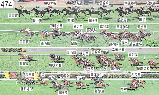 「興趣」於三月十七日被小組按照獸醫意見(右前蹄球節發炎)著令退出,並由後備「醉必勝」(韋達)補上。「興趣」必須通過獸醫檢驗後,才可再次出賽。 「風采」出閘緩慢。「幸運勝利」及「新妙星」自外檔出閘後於早段均在馬群之後切入。「威風猛將」儘管於早段受催策,但未能加速。過了千七米處後,「新力鷹」向外移出橫越「喜喜寶」(潘頓)的後蹄,當時「喜喜寶」在尚未充分帶離下向內斜跑。小組告誡潘頓,在類似情況下必須確保已充分帶離後才可轉換跑線。首次跑過終點時,「幸運勝利」失去平衡。趨近千三米處時,「新力鷹」在被「喜喜寶」帶出更外疊之際受妨礙,當時「喜喜寶」向外斜跑。「新妙星」在中段跑來搶口,跑過五百米處時靠近「幸運勝利」的後蹄處於窘境。轉直路彎時,「風采」受困而未能望空。在末段,衝刺凌厲的「風采」收慢避開「聰明才智」的後蹄,當時「聰明才智」在催策下向內斜跑。「風采」因而未能被力策至終點。 接近終點時,「聰明才智」與「喜喜寶」緊迫競跑。 賽後柏寶表示,「威風猛將」沿途走勢欠順。賽後獸醫立即檢查「威風猛將」,並無發現任何明顯異常之處。賽後獸醫立即檢查「新力鷹」,並無發現任何明顯異常之處。「聰明才智」及「喜喜寶」均須抽取樣本檢驗。