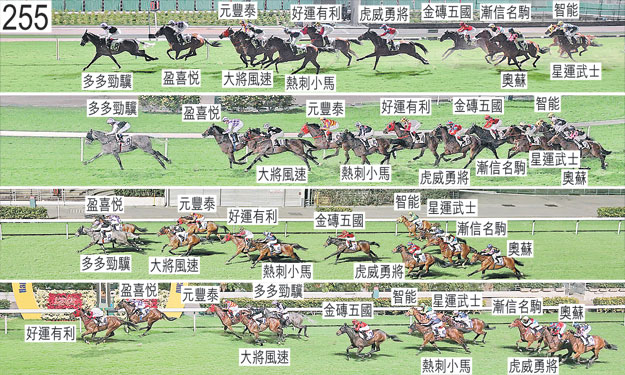 「大將風速」與「多多勁驥」起步時互相碰撞。 「星運武士」與「奧蘇」起步時互相碰撞。 「漸信名駒」出閘笨拙。 「智能」自大外檔出閘後於早段在馬群之後切入。 跑過千一米處時,「奧蘇」在「虎威勇將」後蹄內側處於窘境,當時「虎威勇將」在「大將風速」內側緊迫競跑。 過了九百米處後,儘管騎師已努力阻止,但「大將風速」將頭轉側並向外斜跑。 接近七百米處時,「奧蘇」在沒有遮擋下走外疊。 轉直路彎時,「智能」在與「星運武士」雙雙在「漸信名駒」內側的窄位推進時觸碰內欄,其後失去平衡。 「好運有利」及「盈喜悅」均須抽取樣本檢驗。