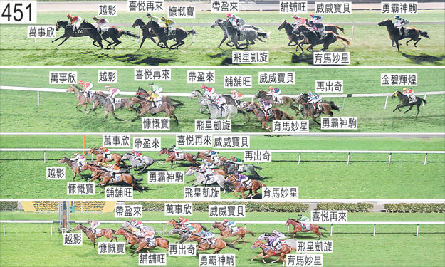 「大將風馳」於三月一日被小組按照獸醫意見(左前腿不良於行)著令退出,並由後備馬匹「育馬妙星」(蔡明紹)補上。「大將風馳」必須通過獸醫檢驗後,才可再次出賽。「萬事欣」起步時向內斜跑,碰撞「喜悅再來」。「飛星凱旋」出閘笨拙。「金碧輝煌」自外檔出閘後於早段收慢以取得遮擋時十分難以穩定走勢,並且數度昂首。「勇霸神駒」自外檔出閘後於早段收慢以佔取有遮擋的位置。過了千一米處後首次轉彎時,「飛星凱旋」開始難以穩定走勢及昂首,並且向外斜跑避開「慷慨寶」的後蹄。在「飛星凱旋」外側競跑的「舖舖旺」因而勒避該駒的後蹄及失蹄。跟隨「舖舖旺」的「再出奇」因而受阻礙。「飛星凱旋」於過了九百米處後失去左後蹄的蹄鐵。過了八百米處後,「舖舖旺」開始十分難以穩定走勢,當「飛星凱旋」靠近「慷慨寶」的後蹄處於窘境時稍微向外斜跑之際,「舖舖旺」推進至「飛星凱旋」內側緊迫競跑。這導致「威威寶貝」在「舖舖旺」內側的窄位競跑,「舖舖旺」則在一段途程上受約束以避開「飛星凱旋」的後蹄。六百米處,「舖舖旺」自己再次在「飛星凱旋」內側推進,當時該處空位不足,導致「威威寶貝」受擠迫,而「舖舖旺」則勒避「飛星凱旋」的後蹄。在直路上,「金碧輝煌」將頭轉側及外閃,導致騎師未能催策坐騎。「金碧輝煌」包尾大敗而回,小組認為該駒的表現難以接受。「金碧輝煌」必須試閘及格,並且通過獸醫檢驗後,才可再次出賽。「育馬妙星」沿途在外疊競跑,沒有遮擋。韋達未能就「喜悅再來」的表現提供任何解釋。他說,坐騎居於領放馬之後競跑時走勢十分暢順,但在受催策時未能加速,在直路上轉弱,表現令人十分失望。賽後獸醫立即檢查「喜悅再來」,並無發現任何明顯異常之處。賽後獸醫立即檢查「飛星凱旋」,並無發現任何明顯異常之處。「越影」及「慷慨寶」均須抽取樣本檢驗。