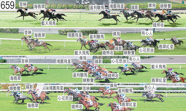 梁家俊(「錢照收」)因攜帶錯誤的馬鞍號布過磅,被罰款二千元。 「傑飛」出閘十分笨拙,向外斜跑,並且碰撞「順勢寶」的後軀及失地。 躍出時,「錢照收」及「心花怒放」均在雙雙斜跑的「首映」與「藍天飛馬」之間受擠迫。「藍天飛馬」於過了一千米處後失去左前蹄的蹄鐵。過了六百米處後轉彎時,「傑飛」一度在「越影」內側的窄位競跑。「海翡翠」轉直路彎時走勢笨拙及外閃。「藍天飛馬」沿途在沒有遮擋下走外疊,在直路上墮退。賽後獸醫立即檢查「藍天飛馬」,發現該駒流鼻血。被查詢時,韋達表示,「傑飛」受催策時未有如他預期般展開強勁衝刺,於末段動作感覺短促。賽後獸醫立即檢查「傑飛」,並無發現任何明顯異常之處。「傑飛」必須通過獸醫檢驗後,才可再次出賽。被查詢時,見習騎師蔣嘉琦表示,她獲指示將「翡翠紅星」置於前列位置競跑,此跑法與她以往策騎該駒的方式一致。然而,「翡翠紅星」於早段受力策後未能加速,傾向內閃,因而居於馬群後列。她說,其後她選擇讓坐騎取得平衡,「翡翠紅星」於直路上移至外疊後衝刺令人滿意。她續說,賽後她向「翡翠紅星」的馬主及練馬師表示,該駒現在或較適合角逐較是晚千二米更長的途程。「順勢寶」及「越影」均須抽取樣本檢驗。
