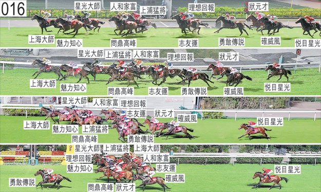 「澤心星」於九月五日被小組按照獸醫意見(左前腿不良於行)著令退出,並由後備馬匹「勇敢傳說」(蔡明紹)補上。「澤心星」必須通過獸醫檢驗後,才可再次出賽。「人和家富」躍出時在「上浦猛將」與「星光大師」之間受擠迫,當時「星光大師」向外斜跑。「理想回報」與「確威風」起步時互相碰撞,兩駒因而雙雙失去平衡。「確威風」其後向外斜跑及碰撞正在「上海大師」內側緊迫競跑的「志友運」。一段短途程後,「理想回報」在「勇敢傳說」與「確威風」之間受擠迫時嚴重失去平衡及收慢,當時「確威風」在「志友運」內側緊迫競跑之際持續失去平衡。「狀元才」及「悅目星光」自外檔出閘後均於早段在馬群之後切入。接近一千一百五十米處時,「志友運」一度收慢避開「上海大師」的後蹄,當時「上海大師」將頭轉側及向內移入避開「問鼎高峰」。跑過一千米處時,「問鼎高峰」在「上海大師」的後蹄外側競跑之際一度昂首,當時「上海大師」向內斜跑後被騎師修正。其後,「問鼎高峰」在沒有遮擋下走外疊。跑過五十米處時,「狀元才」向外移出避開「問鼎高峰」的後蹄,當時「問鼎高峰」在催策下向外斜跑。賽後莫雷拉報告,「志友運」於陣上及賽後發出異常呼吸聲。其後內窺鏡檢查證實該駒患有「喘鳴症」。「理想回報」、「勇敢傳說」及「問鼎高峰」均須抽取樣本檢驗。