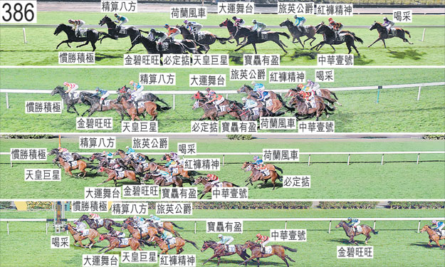 「大運舞台」於起步時向外斜跑及碰撞「荷蘭風車」。「精算八方」與「天皇巨星」於躍出時互相碰撞。起步後不久,出閘笨拙的「寶驫有盈」及「天皇巨星」在「精算八方」與「喝采」之間受擠迫,當時「喝采」被「紅褲精神」碰撞後向外斜跑。這令「寶驫有盈」大力觸碰「天皇巨星」的後軀,「天皇巨星」因而被帶向內跑橫越「寶驫有盈」的跑線,導致「寶驫有盈」被帶向內跑,「喝采」亦因此在「紅褲精神」外側受擠迫時收慢,當時「紅褲精神」在「荷蘭風車」外側緊迫競跑。「中華壹號」自外檔出閘後於早段收慢,在馬群之後切入。「金碧旺旺」自大外檔出閘後於早段起初收慢,繼而在跑了一段短途程後走外疊,並獲許推進。過了九百米處後,儘管騎師已盡力阻止,「荷蘭風車」仍將頭轉側及內閃。「荷蘭風車」其後持續內閃及向內斜跑避開「天皇巨星」,「大運舞台」因而在「荷蘭風車」內側緊迫競跑。「荷蘭風車」於過了八百米處後未能在「天皇巨星」內側保持位置,繼而收慢。在「荷蘭風車」未能保持位置時,「寶驫有盈」向外移出避開該駒的後蹄,「中華壹號」因而被帶向更外疊並於過了七百米處後在「寶驫有盈」的後蹄外側處於窘境。「荷蘭風車」在餘下途程持續內閃,十分難以策騎。「荷蘭風車」必須在轉彎途程上試閘及格後,才可再次出賽。趨近及跑過七百米處時,「必定掂」在「金碧旺旺」內側緊迫競跑。過了六百米處後轉彎時,「喝采」向內斜跑及挨擦內欄。進入直路時,「精算八方」向外斜跑,碰撞「金碧旺旺」的後軀,「金碧旺旺」因而失去平衡。「旅英公爵」於直路上未能望空,接近一百米處時在嘗試推進至「精算八方」與「慣勝積極」之間的窄位時碰撞「精算八方」,當時「精算八方」在「天皇巨星」內側緊迫競跑。「旅英公爵」因而於跑過一百米處時無路可上。「必定掂」沿途在沒有遮擋下走外疊,並於直路上墮退。獸醫於賽後立即檢查「寶驫有盈」,並無發現任何明顯異常之處。「寶驫有盈」、「喝采」及「慣勝積極」均須抽取樣本檢驗。