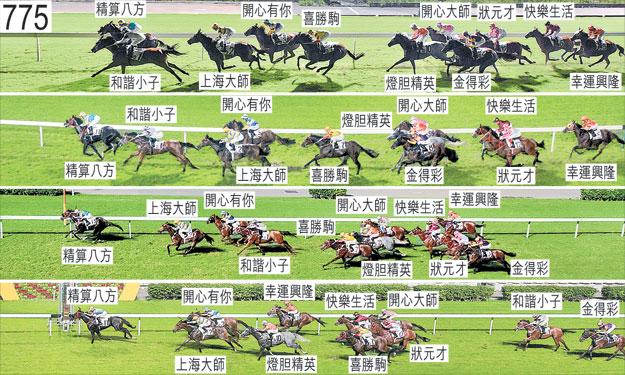 「一舖縱橫」於七月三日被小組按照獸醫意見(食慾不振)著令退出,並由後備馬匹「力奇先鋒」(沈拿)補上。「一舖縱橫」必須通過獸醫檢驗後,才可再次出賽。「幸運興隆」於起步時向外斜跑,碰撞「喜勝駒」的後軀,兩駒因而雙雙失去平衡。「金得彩」於躍出時被「和諧小子」碰撞,「和諧小子」出閘笨拙,繼而向內斜跑。「快樂生活」於起步後不久在「狀元才」的後蹄內側處於窘境,當時「狀元才」向內斜跑。「幸運興隆」及「金得彩」自外檔出閘後均於早段在馬群之後切入。儘管於早段在一段途程上受催策,但「力奇先鋒」仍未能加速,其後於對面直路上被馬群拋離。「力奇先鋒」沿途持續被馬群拋離,包尾大敗而回。獸醫於賽後立即檢查「力奇先鋒」,發現該駒左前腿不良於行。小組認為「力奇先鋒」的表現難以接受。「力奇先鋒」必須試閘及格,以及通過獸醫檢驗後,才可再次出賽。過了六百米處後轉彎時,「開心有你」一度在「上海大師」的內側緊迫競跑,當時儘管其騎師已努力阻止,但「上海大師」仍將頭轉側及內閃。趨近一百米處時,「快樂生活」在「和諧小子」之後向內移入,當時「和諧小子」正在墮退,碰撞「開心大師」,「開心大師」相應向內斜跑,碰撞「幸運興隆」。「金得彩」沿途在沒有遮擋下走外疊。獸醫於賽後立即檢查「和諧小子」及「狀元才」,並無發現任何明顯異常之處。「精算八方」及「上海大師」均須抽取樣本檢驗。