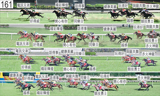 「健康美麗」於躍出時收慢,在馬群之後切入以佔取貼欄位置。「與龍共舞」於起步後在一段短途程上在「玩得好」與「赤火神龍」之間受擠迫,當時「赤火神龍」向內斜跑。「開心有你」於起步時向外斜跑,碰撞「同樂日」。起步後不久,「好得威」向外斜跑,碰撞「精彩輝煌」。「越感」自大外檔出閘後於早段在馬群之後切入。同樣自外檔出閘的「競技勇士」在馬群之後切入,但於過了一千米處後走外疊,沒有遮擋。接近一千米處轉彎時,「與龍共舞」與「赤火神龍」緊迫競跑。過了六百米處後轉彎時,「開心有你」將頭轉側,向內斜跑,碰撞「精彩輝煌」。同樣於過了六百米處後轉彎時,「玩得好」將頭轉側,向著外側的「健康美麗」的後蹄斜跑。跑過一百米處時,「精彩輝煌」將頭轉側,向內斜跑,妨礙「話得事」,導致「精彩輝煌」的騎師史卓豐須停止催策並修正坐騎。接近七十五米處時,見習騎師巫顯東(「電訊兄弟」)跌掉馬鞭。「健康美麗」及「好得威」均須抽取樣本檢驗。