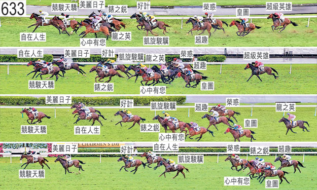 「超級英雄」於開閘時四蹄滯立,因而失地甚多。「超級英雄」其後大敗而回,小組認為該駒的表現難以接受。「超級英雄」必須在試閘中與馬群同步出閘並展現競爭力,以及通過獸醫檢驗後,才可再次出賽。「錶之銳」於起步時向外斜跑,碰撞「好計」。「超趣」自外檔出閘後於早段收慢及在馬群之後切入。「心中有您」儘管於早段在一段不短的途程上受力策,但未能加速,因而沿途在沒有遮擋下走外疊。「龍之英」沿途亦在沒有遮擋下走外疊,其後包尾大敗而回。小組認為「龍之英」的表現難以接受。「龍之英」必須試閘及格,並且通過獸醫檢驗後,才可再次出賽。進入直路時,「超趣」向內移入避開「龍之英」的後蹄。「美麗日子」於過了三百米處後在催策下開始外閃,跑過一百米處時向外斜跑橫越「競駿天驕」的後蹄。一百五十米處,「錶之銳」向外移出避開「凱旋駿驥」的後蹄,當時「凱旋駿驥」在催策下向外斜跑。獸醫於賽後立即檢查「心中有您」,並無發現任何明顯異常之處,但由於該駒煩躁不安,因而未能替牠進行內窺鏡檢查。獸醫於賽後立即檢查「錶之銳」,並無發現任何明顯異常之處。「競駿天驕」及「美麗日子」均須抽取樣本檢驗。