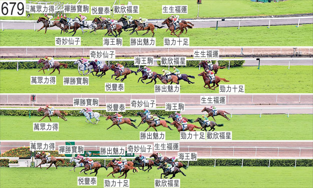 抵達起步點後,「萬眾力得」被發現口部有血。「萬眾力得」接受獸醫檢查,獸醫認為該駒適宜出賽。「勝出魅力」於起步時向內斜跑,碰撞「海王駒」,「海王駒」相應向內斜跑,導致出閘僅屬一般的「悅豐泰」收慢。其後,「勝出魅力」收慢以取得遮擋。「生生福運」於起步時失蹄。趨近千一米處時,「歡欣福星」向內移入避開「悅豐泰」的後蹄,當時「悅豐泰」被「海王駒」帶向內跑,繼而向內移入避開該駒。「勁力十足」自大外檔出閘後於早段收慢以取得遮擋,跑過千一米處搶口時昂首。趨近一千米處時,「海王駒」搶口及靠近「奇妙仙子」的後蹄處於窘境。其後,「海王駒」於跑過一千米處時走外疊,沒有遮擋。「勝出魅力」於接近六百米處時失去右前蹄的蹄鐵。直路早段,「勝出魅力」在催策下走勢稚嫩及內閃。賽後,何澤堯報告,「歡欣福星」出閘僅屬一般,居中間位置,走勢暢順。他說,儘管賽事步速普通,不合坐騎發揮,但無論如何,他認為坐騎早自五百米處已脫口,表現令人失望。他說,坐騎於進入直路時移至「海王駒」外側,並在「勝出魅力」內側緊迫競跑,繼而與該駒互相觸碰,因而於過了四百米處後失去平衡。他又說,坐騎其後須受催策,末段衝刺不及上仗初出。獸醫於賽後立即檢查「歡欣福星」,內窺鏡檢查顯示該駒的氣管內有很多血。「歡欣福星」必須通過獸醫檢驗後,才可再次出賽。「歡欣福星」、「萬眾力得」及「禪勝寶駒」均須抽取樣本檢驗。
