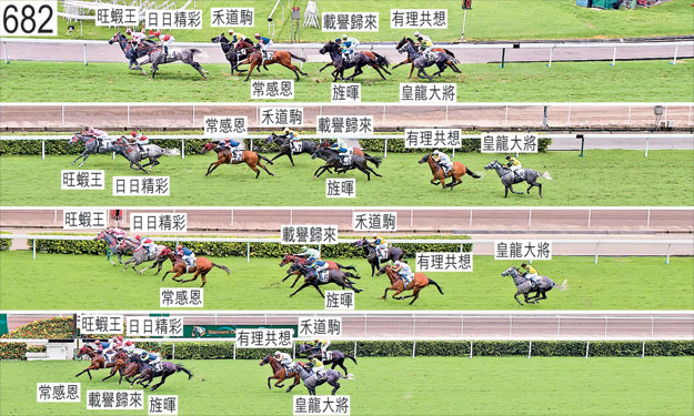 「禾道駒」於躍出時碰撞「常感恩」的後軀。「載譽歸來」出閘僅屬一般。「有理共想」於早段在馬群之後切入。跑過千一米處時,「載譽歸來」收慢避開「常感恩」的後蹄。接近終點時,「日日精彩」在「常感恩」與「旺蝦王」之間的窄位競跑,當時「旺蝦王」向外斜跑。「旌暉」大部分途程在沒有遮擋下走外疊。獸醫於賽後立即檢查「有理共想」,並無發現任何明顯異常之處。「常感恩」及「旺蝦王」均須抽取樣本檢驗。