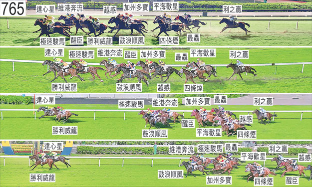 跑過二百五十米處時,「平海歡星」向外移出避開「醒臣」的後蹄以望空。