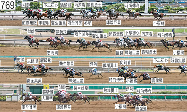 「驃騎飛」於起步時向外斜跑,碰撞「兩全其美」。「數糊勇士」出閘十分笨拙。「超霸無敵」於起步時嚴重失蹄。「小福將」於起步時向外斜跑,阻礙「向前看」。「時尚傳奇」及「喜盈運」自外檔出閘後均於早段收慢,在馬群之後切入。「超霸無敵」在沒有遮擋下走外疊直至接近八百米處。趨近八百米處時,「不忘初心」收慢避開「超霸無敵」(史卓豐)的後蹄,當時「超霸無敵」在尚未充分帶離下向內移入。小組譴責史卓豐,並告誡他在類似情況下必須充分帶離。在「不忘初心」內側競跑的「驃騎飛」因而一度在該駒內側緊迫競跑。「不忘初心」收慢時,跟隨其後的「兩全其美」推進至該駒與「醫生雄星」之間出現的窄位。「兩全其美」及「醫生雄星」其後在一段不短的途程上緊迫競跑及互相碰撞,三駒因而均失去平衡。趨近六百米處時,持續在「醫生雄星」(蔡明紹)內側緊迫競跑的「兩全其美」將頭轉側及內閃避開該駒,導致「不忘初心」被帶向內跑橫越「向前看」應有的跑線,「向前看」因而勒避及失地。由於此宗事件由多個因素造成,小組不採取進一步行動,但告誡蔡明紹須確保留意本身的競跑位置,並須盡力阻止坐騎斜跑及對其他馬匹造成擠迫。進入直路時,「數糊勇士」向外移出避開「盛勢」的後蹄。跑過二百五十米處時,「數糊勇士」向外斜跑,導致「時尚傳奇」及「小福將」均受妨礙。過了一百米處後,「驃騎飛」在「志聰明」的後蹄內側處於窘境。「兩全其美」於直路上在催策下內閃。「志聰明」沿途在沒有遮擋下走外疊。「數糊勇士」於陣上失去左前蹄的蹄鐵。「超霸無敵」及「不忘初心」均大敗而回,小組認為該兩駒的表現難以接受。「超霸無敵」及「不忘初心」均必須試閘及格,並且通過獸醫檢驗後,才可再次出賽。獸醫於賽後立即檢查「超霸無敵」、「向前看」及「不忘初心」,並無發現任何明顯異常之處。「驃騎飛」、「兩全其美」及「輝煌巨星」均須抽取樣本檢驗。