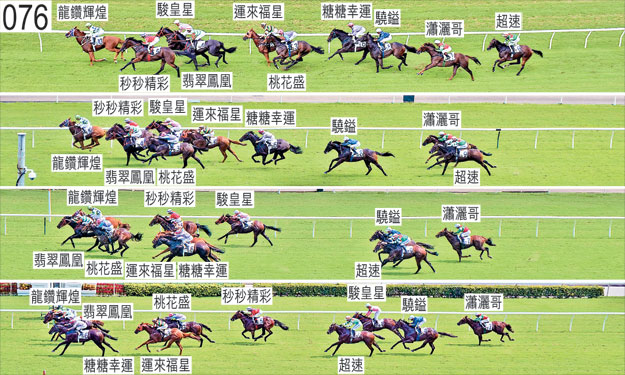 「糖糖幸運」於躍出時在「驍鎰」與「龍鑽輝煌」之間受擠迫,當時「龍鑽輝煌」稍微向外斜跑。在此宗事件中,「糖糖幸運」與「驍鎰」互相碰撞。「秒秒精彩」及「超速」均出閘笨拙,繼而於起步時互相觸碰。趨近千一米處時,「糖糖幸運」在「運來福星」與「桃花盛」(薛恩)之間受擠迫,當時「運來福星」向外斜跑避開「駿皇星」的後蹄,而「桃花盛」則向內斜跑。小組告誡薛恩,在類似情況下須加倍小心。「驍鎰」於早段跑來搶口。接近九百米處趨近彎位時,「糖糖幸運」在搶口之際靠近「運來福星」的後蹄處於窘境。「龍鑽輝煌」及「翡翠鳳凰」均須抽取樣本檢驗。