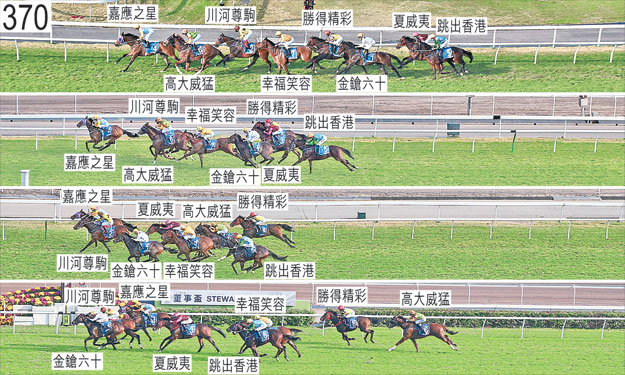 「跳出香港」出閘僅屬一般。一百米處,「夏威夷」在「川河尊駒」之後內閃,靠近該駒的後蹄處於窘境。奔向終點時,「夏威夷」仍在「川河尊駒」與「金鎗六十」之間處於窘境,因而未能全力施為,當時「川河尊駒」在催策下稍微向外斜跑。獸醫於賽後立即檢查「勝得精彩」,並無發現任何明顯異常之處。「金鎗六十」及「川河尊駒」均須抽取樣本檢驗。