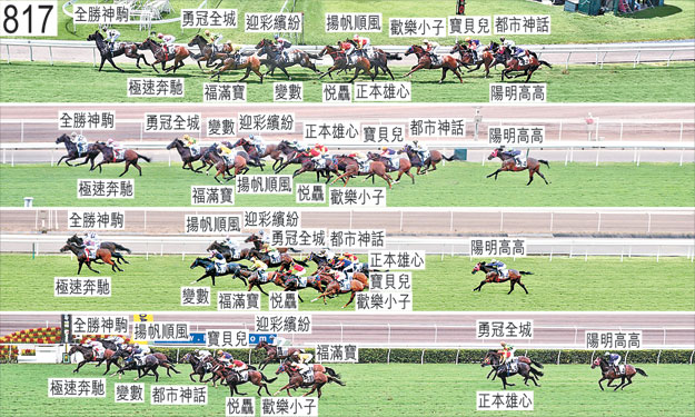 抵達起步點後,「大紅心」接受獸醫檢查,被發現後腿不良於行,因而不適宜出賽。小組按照獸醫意見著令「大紅心」退出此賽。「大紅心」必須通過獸醫檢驗後,才可再次出賽。「正本雄心」出閘僅屬一般,繼而被「都市神話」碰撞,當時「都市神話」向內斜跑。「都市神話」其後勒避「正本雄心」的後蹄,當時「正本雄心」在被「變數」碰撞後向外斜跑,而「變數」則於躍出時被「揚帆順風」挨擦。「歡樂小子」於起步後不久被「悅驫」碰撞,而「悅驫」則相應被「極速奔馳」碰撞。「陽明高高」及「寶貝兒」自外檔出閘後均於早段在馬群之後切入。趨近千二米處時,「迎彩繽紛」於收慢避開「勇冠全城」的後蹄之際失去平衡,當時「勇冠全城」稍微向外斜跑。趨近一千米處時,「迎彩繽紛」被「變數」碰撞,當時「變數」向內斜跑。「寶貝兒」於過了八百米處後失去右前蹄的蹄鐵。「寶貝兒」於直路早段未能望空,跑過三百米處時向內移入避開「悅驫」的後蹄。「寶貝兒」其後在「福滿寶」之後再度受困而未能望空直至過了二百米處後。跑過五十米處時,「都市神話」與「寶貝兒」互相碰撞。「福滿寶」沿途走外疊,沒有遮擋。獸醫於賽後立即檢查「正本雄心」及「歡樂小子」,並無發現任何明顯異常之處。獸醫於賽後立即檢查「勇冠全城」,內窺鏡檢查顯示該駒的氣管內有很多痰,同時發現該駒口部有血。「極速奔馳」及「全勝神駒」均須抽取樣本檢驗。