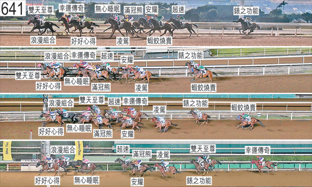 「蝦餃燒賣」、「錶之功能」及「超速」自外檔出閘後均於早段在馬群之後切入。