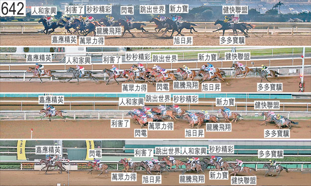 「健快聯盟」及「龍騰飛翔」出閘均僅屬一般。「旭日昇」及「多多寶驥」自外檔出閘後均於早段在馬群之後切入。跑了一段短途程後,「新力寶」向著內側的「閃電」的後軀斜跑。跑過一千米處時,「新力寶」在「跳出世界」的外側緊迫競跑。過了七百米處後轉彎時,「龍騰飛翔」在「利害了」的後蹄內側處於窘境,當時「利害了」向內斜跑。其後,「龍騰飛翔」將頭轉側及外閃,接近六百米處時妨礙「閃電」。接近二百五十米處時,「跳出世界」起初移至「人和家興」的外側以嘗試在該駒與「利害了」之間推進,其後移至「人和家興」的內側,因而在該駒的後蹄內側處於窘境,當時「人和家興」開始墮退。居「跳出世界」內側的「秒秒精彩」也在該駒內側的窄位競跑。其後,「秒秒精彩」於過了二百米處後持續在「跳出世界」內側緊迫競跑之際收慢。「萬眾力得」大部分途程走外疊,沒有遮擋。「嘉應精英」及「閃電」均須抽取樣本檢驗。