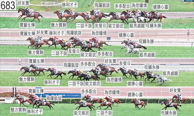 前往配鞍處前在沙圈時,「旺鋪永勝」掙脫助理員的牽引。「旺鋪永勝」在被捉回後接受獸醫檢查,獸醫認為該駒適宜出賽。抵達起步點後,班德禮被「健康心靈」拋下,人馬無恙。抵達閘廂後,巴度表示對「寶貝兒」的動作有疑慮。「寶貝兒」接受獸醫檢查,獸醫表示,他認為該駒左前腿不良於行,因而不適宜出賽。小組按照獸醫意見著令「寶貝兒」退出此賽。「寶貝兒」必須通過獸醫檢驗後,才可再次出賽。「好友寶」出閘笨拙。「魅力寶駒」於起步時向內斜跑,碰撞「健康心靈」,「健康心靈」相應向內斜跑,碰撞「能文能武」。其後,「健康心靈」在馬群之後切入以取得遮擋。趨近一千米處時,「健康心靈」在收慢以取得遮擋之際昂首及走勢欠順。「為您鍾情」自大外檔出閘笨拙,向內斜跑及碰撞「銀亮威龍」,其後在馬群之後切入以取得遮擋。自外檔出閘的「銀亮威龍」同樣於早段收慢,其後沿途在沒有遮擋下走外疊。同樣自外檔出閘的「旺鋪永勝」在馬群之後切入「友瑩日」出閘笨拙,其後於早段在一段不短的途程上在十分難以穩定走勢時昂首。跑過一千一百五十米處時,走勢欠順的「友瑩日」向內斜跑,碰撞「勝利才子」,「勝利才子」因而失去平衡。「二話不說」儘管於早段在一段不短的途程上受力策,但加速緩慢,其後於跑過一千米處時在沒有遮擋下走外疊。跑過七百米處時,「能文能武」向內斜跑,妨礙「多多配合」。「勝利才子」於直路早段難以望空。「寶麗生輝」於直路早段在催策下內閃。過了四百米處後,「飛躍凱旋」向外移出數疊以望空。「多多配合」於直路上在催策下內閃。賽後,獸醫應練馬師沈集成的要求替「健康心靈」進行內窺鏡檢查。獸醫表示,是項檢查顯示該駒的氣管內有很多血。「健康心靈」必須通過獸醫檢驗後,才可再次出賽。同樣於賽後,獸醫應練馬師容天鵬的要求替「多多配合」進行內窺鏡檢查。獸醫表示,是項檢查顯示該駒的氣管內有很多痰。獸醫於賽後立即檢查「好友寶」及「旺鋪永勝」,並無發現任何明顯異常之處。「魅力寶駒」及「勝利才子」均須抽取樣本檢驗。
