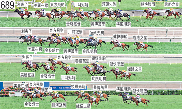 「川河冠駒」於躍出時受「金發盛世」阻礙,當時「金發盛世」向外斜跑。自外檔出閘的「健快聯盟」及「綫路之星」均於早在馬群之後切入。「領頭先駒」於起步後不久同樣收慢以取得遮擋。跑過千一米處時,「疾風明駒」於搶口及在「善傳萬里」之後處於窘境之際昂首。接近二百五十米處時,「健快聯盟」向外移出避開「疾風明駒」的後蹄,當時「疾風明駒」被「善傳萬里」帶向外跑,而「善傳萬里」則向外斜跑避開「川河冠駒」。在宣佈覆磅完畢前,小組曾考慮是否應代表「利害了」的馬主及練馬師提出抗議。小組確定,於末段正以勁勢衝刺的「東方飛影」推進至「利害了」內側,其後於十分接近終點時向外斜跑,碰撞該駒的後軀,兩駒因而雙雙失去平衡。考慮到兩駒於末段衝刺時的走勢,以及此宗事件在十分接近終點時發生,小組決定不進行正式抗議研訊。賽後,獸醫應練馬師容天鵬的要求替「領頭先駒」進行內窺鏡檢查。獸醫表示,是項檢查顯示該駒的氣管內有很多血。「領頭先駒」必須通過獸醫檢驗後,才可再次出賽。獸醫於賽後立即檢查「疾風明駒」及「綫路之星」,並無發現任何明顯異常之處。「美麗在線」及「金發盛世」均須抽取樣本檢驗。