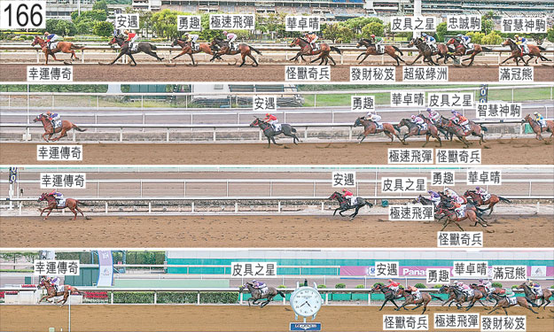 「安遇」於起步時向外斜跑,妨礙「發財秘笈」,而「發財秘笈」相應向外斜跑,碰撞「忠誠駒」。「極速飛彈」於躍出時被「超級綠洲」碰撞,當時「超級綠洲」向外斜跑。「智慧神駒」於開閘時一對前腳並舉,出閘十分笨拙,因而失地。其後,自外檔出閘的「智慧神駒」於早段在馬群之後切入。同樣於自外檔出閘的「皮具之星」及「滿冠熊」均於起步後不久收慢以取得遮擋。首次趨近終點時,「發財秘笈」向內移入避開「超級綠洲」的後蹄。四百米處,「忠誠駒」內閃,一度在「智慧神駒」的後蹄外側處於窘境。「超級綠洲」包尾大敗而回,小組認為該駒的表現難以接受。「超級綠洲」必須試閘及格,並且通過獸醫檢驗後,才可再次出賽。獸醫於賽後立即檢查「智慧神駒」、「極速飛彈」、「超級綠洲」及「華卓晴」,並無發現任何明顯異常之處。「幸運傳奇」及「皮具之星」均須抽取樣本檢驗。