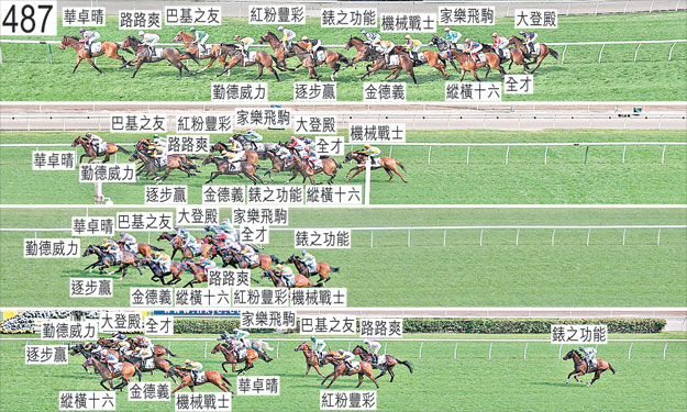 「機械戰士」於起步時被「紅粉豐彩」碰撞,當時「紅粉豐彩」向內斜跑。「家樂飛駒」出閘僅屬一般,其後傾向內閃,靠近「錶之功能」處於窘境。「大登殿」及「全才」均出閘緩慢,早段在馬群之後切入。接近千二米處時,「勤德威力」昂首及搶口。「家樂飛駒」於中段搶口,接近一千米處時在收慢避開「錶之功能」的後蹄之際昂首。「大登殿」於接近四百五十米處時一度受困。跑過四百五十米處時,「錶之功能」外閃及避開「紅粉豐彩」,碰撞「金德義」。趨近二百米處時,「全才」在「巴基之友」之後受困,移至該駒內側以望空。「逐步贏」的騎師巴度因在直路上多次對坐騎右肩用鞭而被罰款七千五百元。被查詢有關「金德義」的騎法時,布文表示,儘管他未有獲發明確指示要讓坐騎上前,但馬主及練馬師均認為坐騎會順其自然地佔取前列位置。他說,他認為賽事早段步速偏快,導致坐騎居較賽前預期為後的位置。他又說,坐騎於早段及中段沿途均未能取得遮擋,而賽事步速於接近千二米處時減慢,導致坐騎於此階段走勢較佳,因此他不願讓坐騎展步上前。他又說,他決定讓坐騎留居中間位置也是受到坐騎居頭馬「逐步贏」之後及外側的位置影響,他曾預期倘若他讓坐騎發力上前,坐騎將被帶出較外疊。他進一步表示,「逐步贏」於八百米處向外斜跑,他得以讓坐騎在該駒之後取得遮擋,並於入直路時跟隨該駒,其後將坐騎移至該駒外側,坐騎繼而望空及不受干擾地競跑至終點。獸醫於賽後立即檢查「錶之功能」,並無發現任何明顯異常之處。「勤德威力」、「逐步贏」及「縱橫十六」均須抽取樣本檢驗。